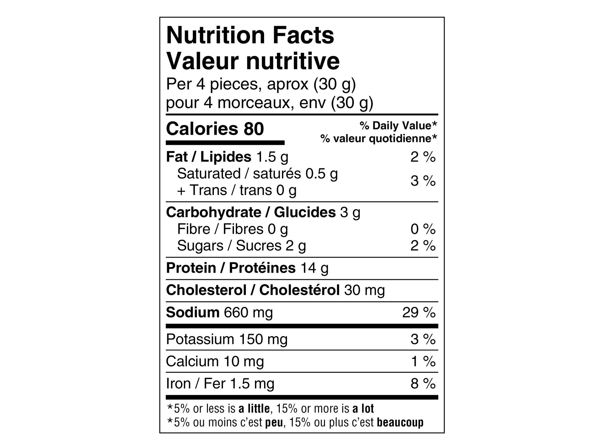 INGREDIENTS: boeuf, sel de mer, sucre de canne, jus d’ananas, vinaigre de cidre de pomme, epices, melasse, acid ascorbique (vitamine c), ail, nitrite de sodium, fumee