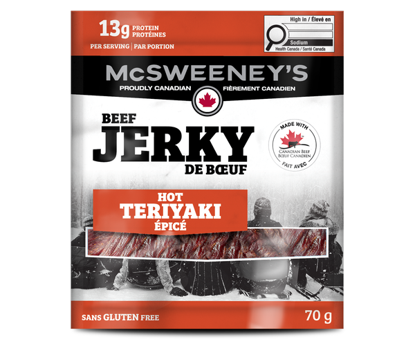Take everything you love about our Teriyaki Beef Jerky and turn up the heat! Premium Canadian Beef, slow marinated with our signature blend of garlic, spices, and a hint of sweetness, finished with a bold kick.