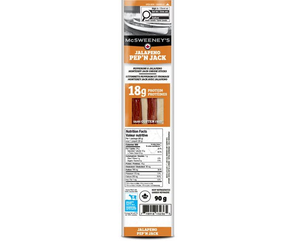 Spice things up with this fiery favourite. Our Jalapeño Pep ‘N Jacks combine naturally hardwood smoked pork and beef pepperoni with Jalapeño Monterey Jack cheese made from 100% Canadian milk for a high-protein, flavour-packed snack.
